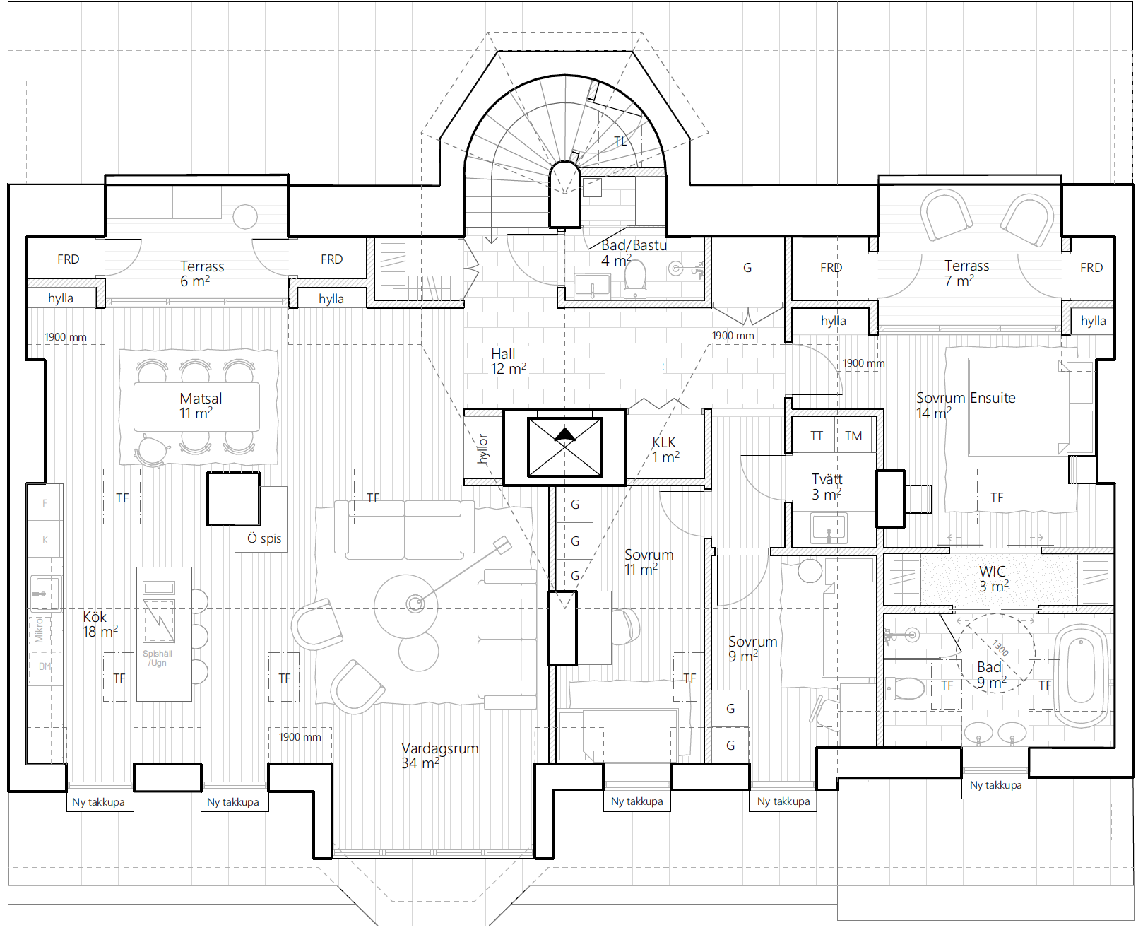Vid planering av layout behöver man ta häsyn till befintliga skorstenstockar, vinklar och takhöjd.
