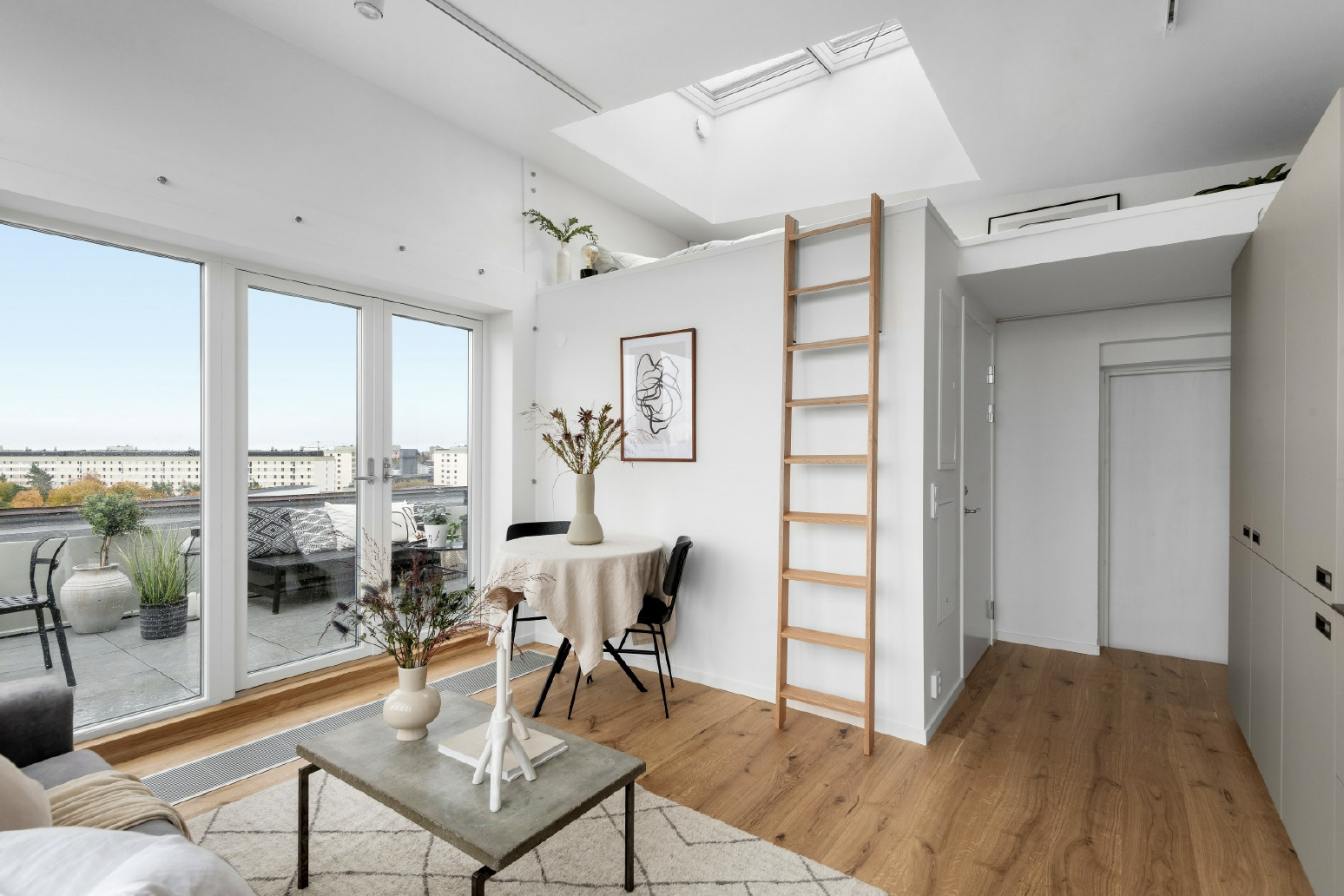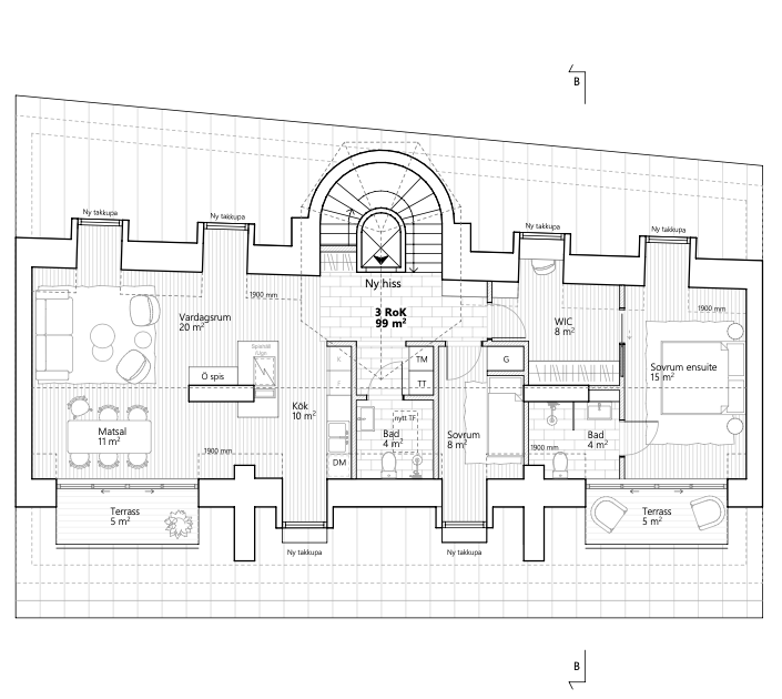 Påbyggnad på befintligt tak med utsikt över Stockholms stad.